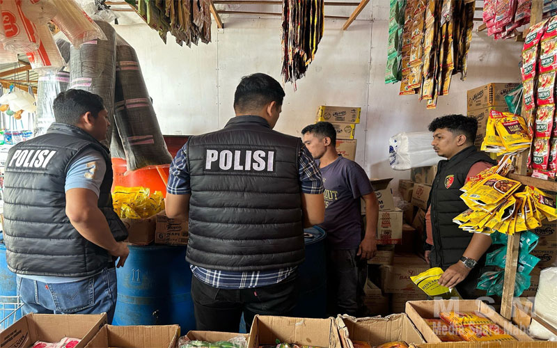 Petugas dari Satgas Pangan Satreskrim Polres Pidie melaksanakan pengecekan di beberapa toko dan kios di Pasar Kota Sigli, Kabupaten Pidie.