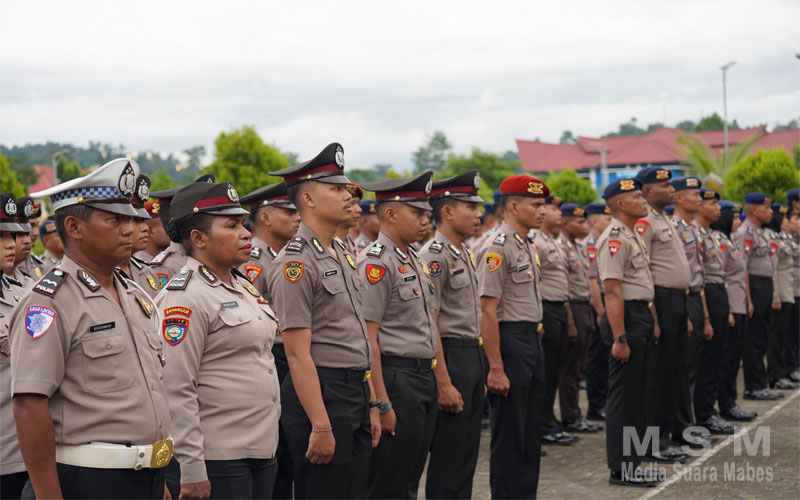 Kegiatan berlangsung dilapangan apel Polda Papua Barat yang dipimpin langsung oleh Kapolda Papua Barat Irjen Pol Johnny Eddizon Isir,S.I.K.,M.T.C.P. pada Senin sore, 30 Juni 2025.