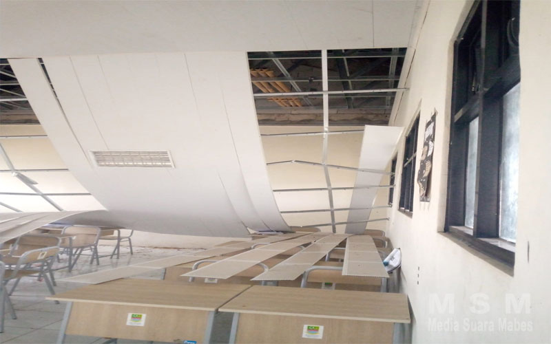 Plafon sekolah yang ambruk menunjukkan bahwa mutu bangunan tersebut tidak sesuai standar yang seharusnya.
