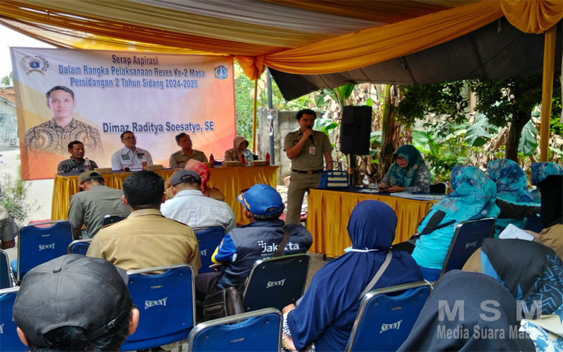 IndoGlobalNews (Jaringan MSM), Marunda – Dalam rangka pelaksanaan Reses Ke-2 Masa Persidangan 2 Tahun Sidang 2024-2025, Ketua Komisi C DPRD DKI Jakarta, Dimaz Raditya Soesatyo, S.E., menggelar acara serap aspirasi bertempat di RW 06, Kelurahan Marunda. Acara yang dimulai pukul 11.00 WIB ini dihadiri oleh berbagai pihak, termasuk perwakilan dari dinas-dinas terkait, di antaranya Syamsudin dari Dinas Lingkungan Hidup (KLH), Rangga dari Dinas Bina Marga, Yuli Susanti dari Dinas Sosial, Viktor Hotman Lurah Marunda (PLT), Rohiman dari Satpol PP Marunda, Sofyan FKDM Marunda, serta Abdul Rohman LMK Marunda. Selain itu, hadir pula tokoh masyarakat setempat, Ali Sutrisno, Ketua RW 06.