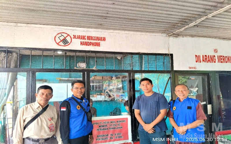 MediaSuaraMabes, Kab. Indragiri Hilir – Media Suara Mabes Kabupaten Indragiri Hilir melakukan kunjungan ke Stasiun Pengisian Bahan Bakar Bunker (SPBB) PT. Hera Inhil Mandiri yang terletak di Perairan Tembilahan pada Senin siang (30/6/2025). Kunjungan tersebut dipimpin oleh Kepala Biro Media Suara Mabes Inhil, Drs. Agustami Tolib, didampingi Wakil Kepala Biro Saprizal dan jurnalis Manuntun Manullang, SH.