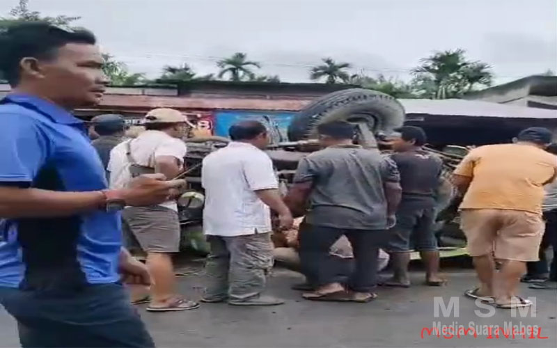 Menurut informasi yang dihimpun, kecelakaan terjadi diduga akibat truk mengalami rem blong saat melintas di jalur menurun. Kendaraan berat yang diangkut semakin menambah beban, membuat sopir kehilangan kendali hingga truk terguling.