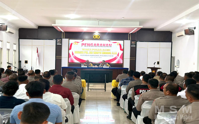 MediaSuaraMabes, Sigli – Wakapolda Aceh Brigjen Pol. Ari Wahyu Widodo, SIK, memberikan pengarahan langsung kepada personel Polres Pidie dalam kunjungan kerjanya, Selasa (22/7/2025). sore